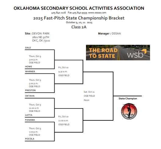 The Warner Lady Eagles will take on Preston Lady Pirates at 5:00pm, Thursday October the 9th on OG&E Field at :DEVON PARK 2801 NE 50TH OKC, OK 73111